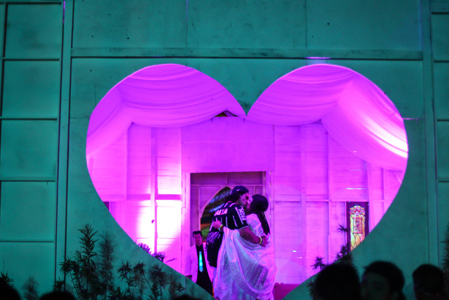 Ian Dugas and Sierra Lewis share a kiss following their marriage ceremony at Electric Daisy Carnival at the Las Vegas Motor Speedway in Las Vegas on Sunday, June 21, 2015. (Chase Stevens/Las Vegas Review-Journal) Follow Chase Stevens on Twitter @csstevensphoto