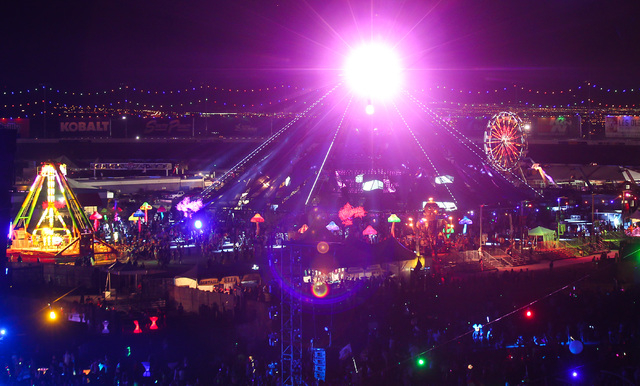 The Kinetic Field stage is seen at Electric Daisy Carnival at the Las Vegas Motor Speedway in Las Vegas during the early hours of Monday, June 22, 2015. (Chase Stevens/Las Vegas Review-Journal) Follow Chase Stevens on Twitter @csstevensphoto