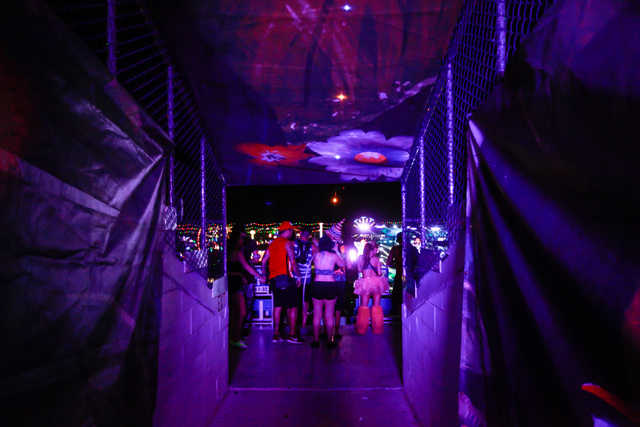Attendees explore the Bud Light House of Whatever area at Electric Daisy Carnival at the Las Vegas Motor Speedway in Las Vegas during the early hours of Monday, June 22, 2015. (Chase Stevens/Las Vegas Review-Journal) Follow Chase Stevens on Twitter @csstevensphoto