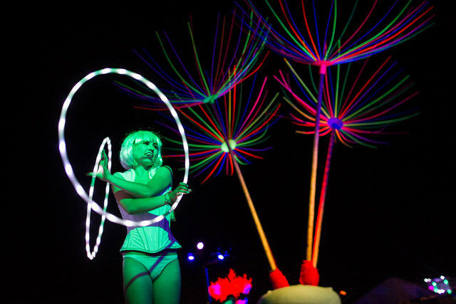 A performer hula hoops at the Dandelion Forest art installation at Electric Daisy Carnival at the Las Vegas Motor Speedway in Las Vegas during the early hours of Monday, June 22, 2015. (Chase Stevens/Las Vegas Review-Journal) Follow Chase Stevens on Twitter @csstevensphoto