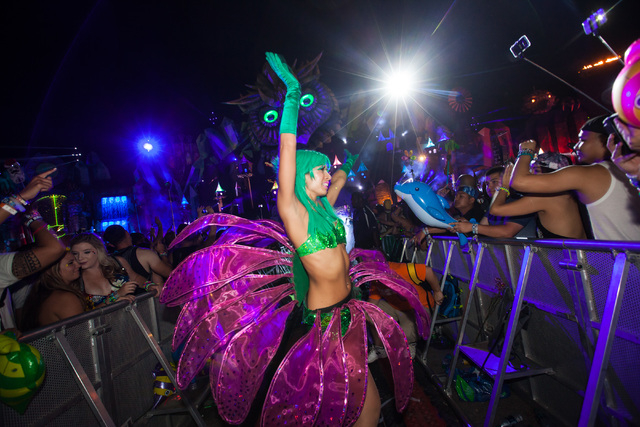 Costumed performers wander around the festival grounds at Electric Daisy Carnival at the Las Vegas Motor Speedway in Las Vegas on Sunday, June 21, 2015. (Chase Stevens/Las Vegas Review-Journal) Follow Chase Stevens on Twitter @csstevensphoto