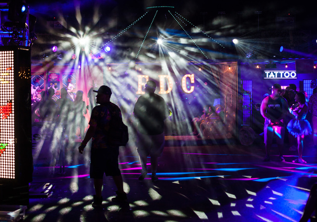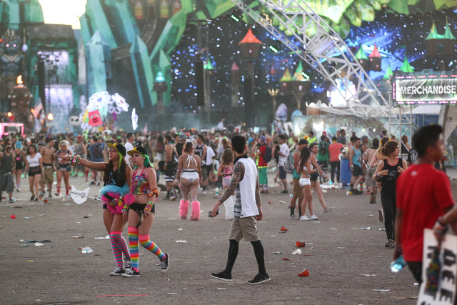 Attendees make their way to the Kinetic Field stage at Electric Daisy Carnival at the Las Vegas Motor Speedway in Las Vegas on Sunday, June 21, 2015. (Chase Stevens/Las Vegas Review-Journal) Follow Chase Stevens on Twitter @csstevensphoto