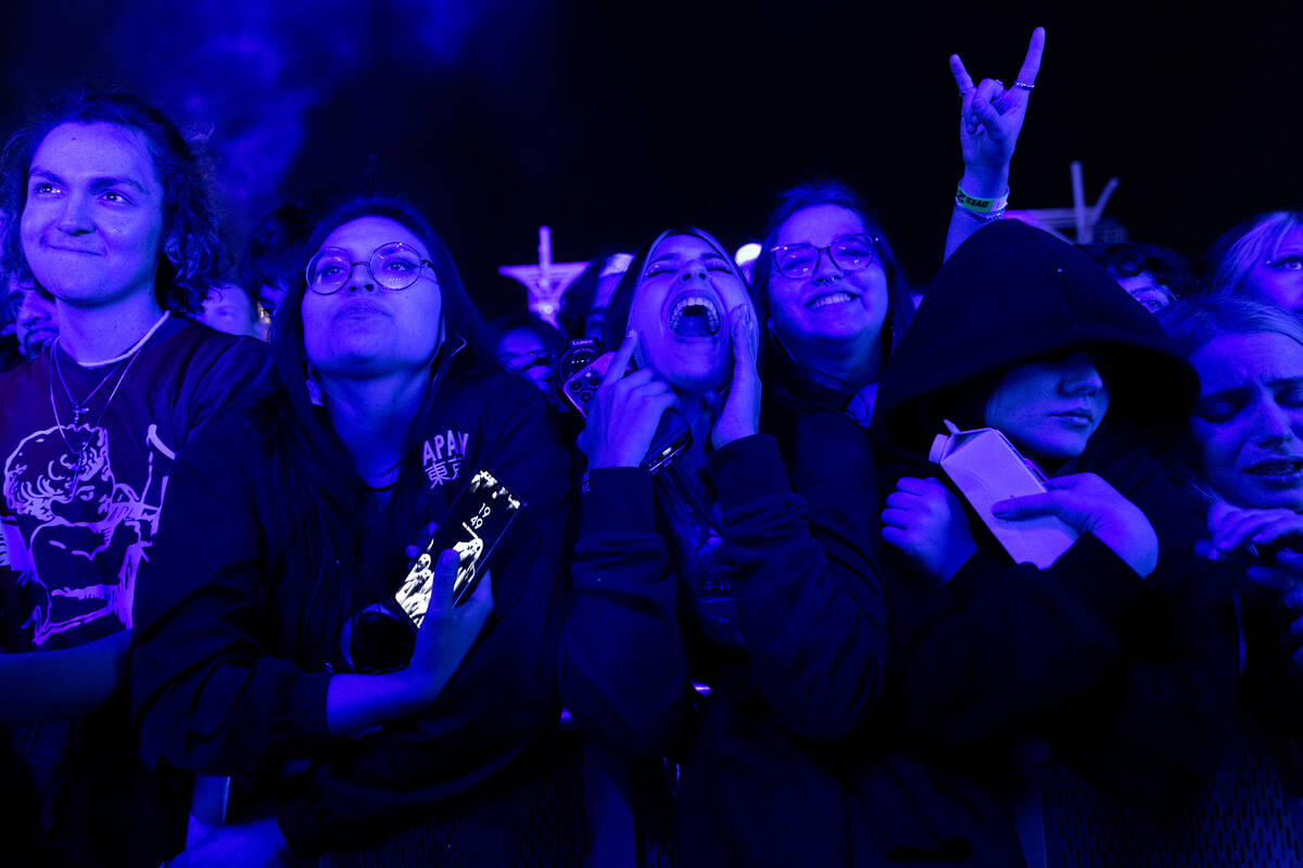 Still, the festival proved to be a hit the next day, with a massive crowd of tens of thousands coming dressed in the deepest shade of asphalt, almost exclusively clad in black, reveling in the warm glow of late ’90s/early aughts nostalgia, singing along lustily, constantly to the songs that soundtracked their coming of age.