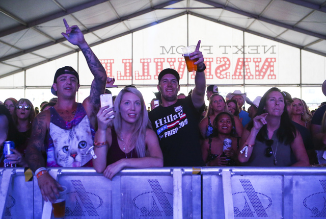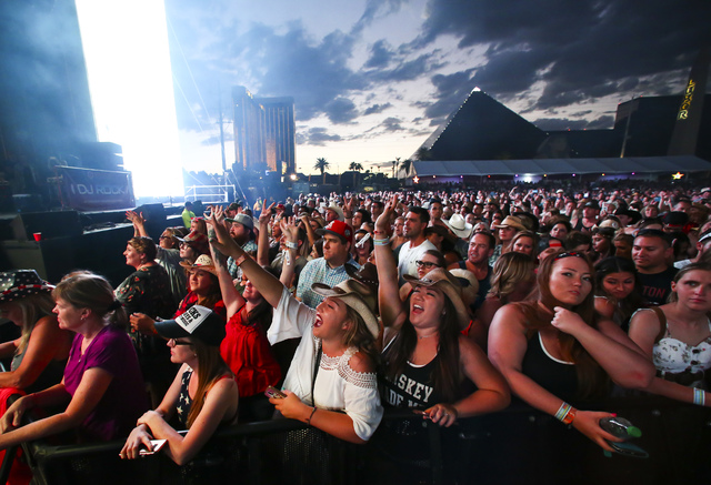Attendees cheer as Jon Langston performs during the Route 91 Harvest country music festival at the MGM Resorts Village festival site in Las Vegas on Friday, Sept. 30, 2016. Chase Stevens/Las Vegas Review-Journal Follow @csstevensphoto