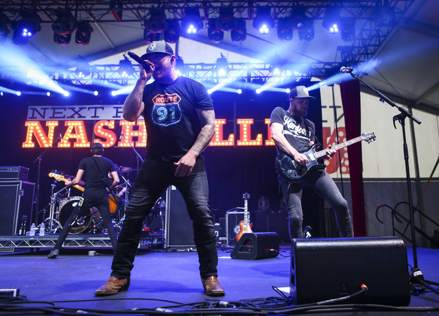 Jon Langston, left, performs during the Route 91 Harvest country music festival at the MGM Resorts Village festival site in Las Vegas on Friday, Sept. 30, 2016. Chase Stevens/Las Vegas Review-Journal Follow @csstevensphoto