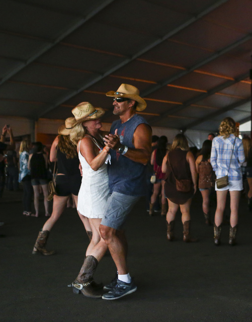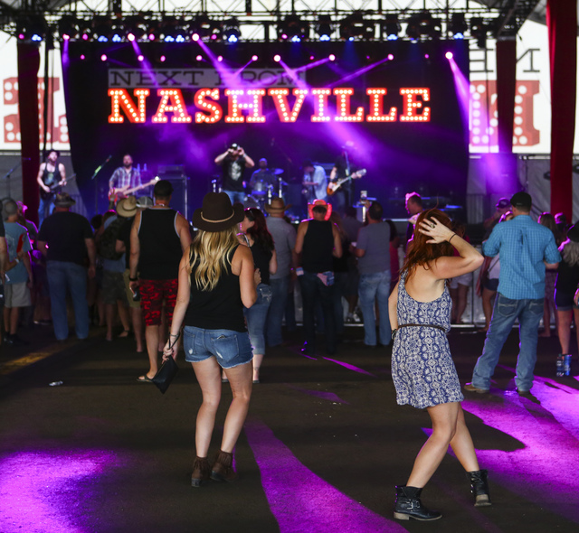 Attendees dance during the Route 91 country music festival at the MGM Resorts Village festival site in Las Vegas on Friday, Sept. 30, 2016. Chase Stevens/Las Vegas Review-Journal Follow @csstevensphoto