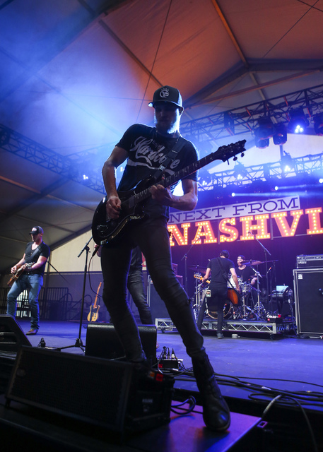 A member of Jon Langston's band performs during the Route 91 Harvest country music festival at the MGM Resorts Village festival site in Las Vegas on Friday, Sept. 30, 2016. Chase Stevens/Las Vegas Review-Journal Follow @csstevensphoto