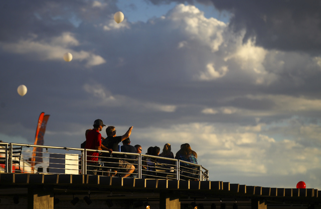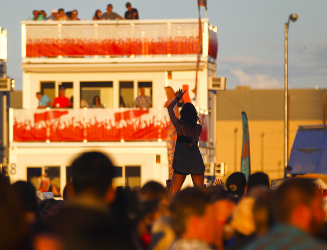 Attendees take in the sights from an elevated view during the Route 91 Harvest country music festival at the MGM Resorts Village festival site in Las Vegas on Friday, Sept. 30, 2016. Chase Stevens/Las Vegas Review-Journal Follow @csstevensphoto