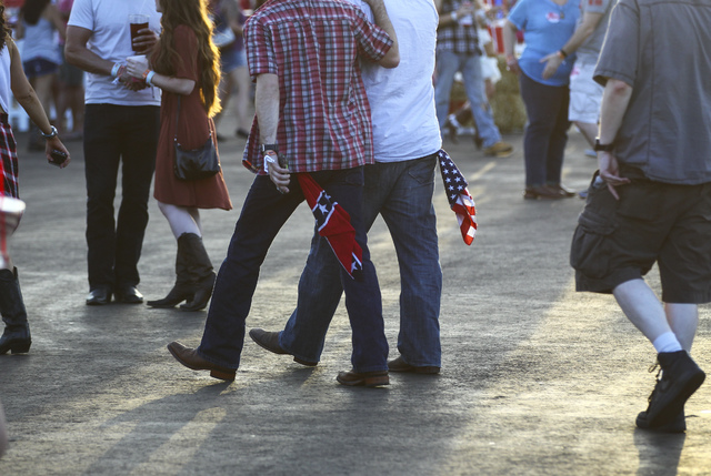 A man wears a confederate flag bandana during the Route 91 Harvest country music festival at the MGM Resorts Village festival site in Las Vegas on Friday, Sept. 30, 2016. Chase Stevens/Las Vegas Review-Journal Follow @csstevensphoto