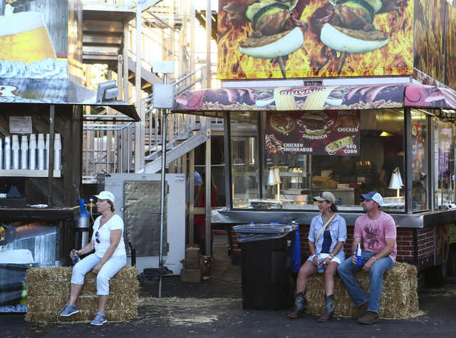 Attendees sit on haystacks during the Route 91 Harvest country music festival at the MGM Resorts Village festival site in Las Vegas on Friday, Sept. 30, 2016. Chase Stevens/Las Vegas Review-Journal Follow @csstevensphoto