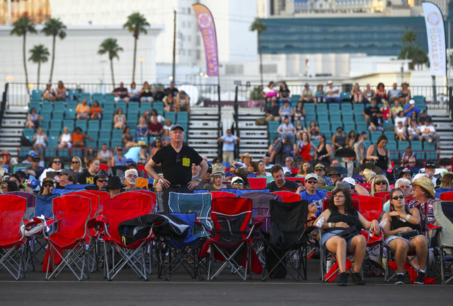 Attendees sit on camping chairs during the Route 91 Harvest country music festival at the MGM Resorts Village festival site in Las Vegas on Friday, Sept. 30, 2016. Chase Stevens/Las Vegas Review-Journal Follow @csstevensphoto