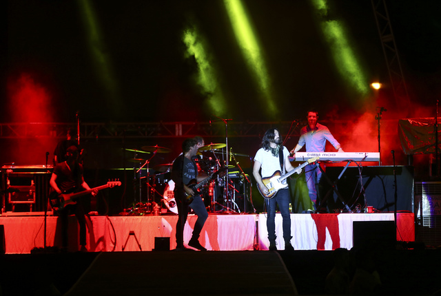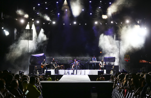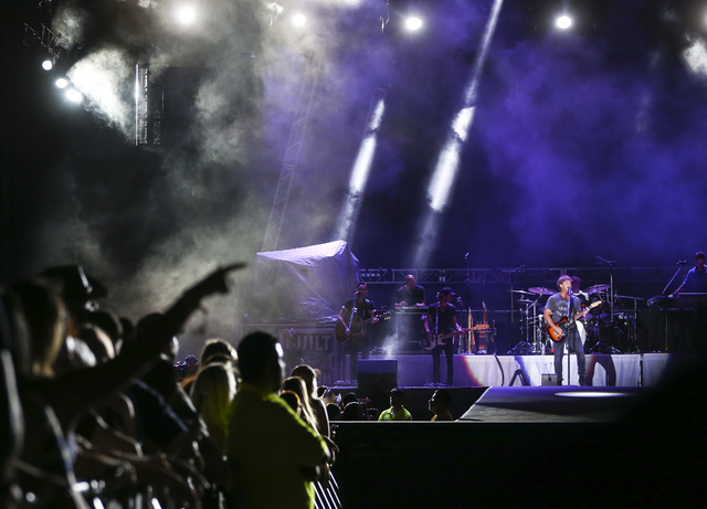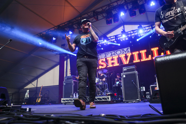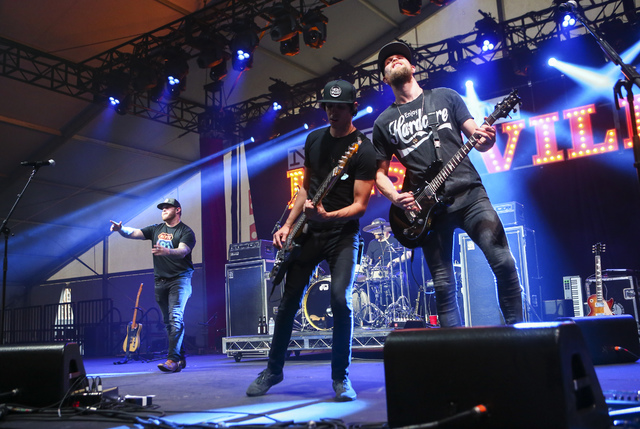 Jon Langston, center left, performs during the Route 91 Harvest country music festival at the MGM Resorts Village festival site in Las Vegas on Friday, Sept. 30, 2016. Chase Stevens/Las Vegas Review-Journal Follow @csstevensphoto