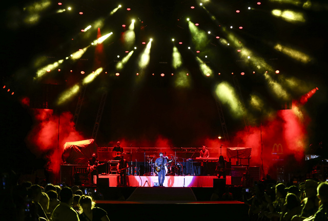 Attendees walk the festival grounds during the Route 91 Harvest country music festival at the MGM Resorts Village festival site in Las Vegas on Friday, Sept. 30, 2016. Chase Stevens/Las Vegas Review-Journal Follow @csstevensphoto