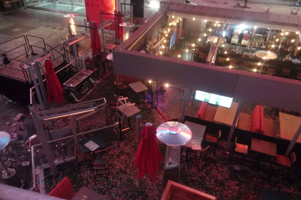 By 4 a.m. Monday most revelers were starting to head in. Outside the CVS near Harmon Avenue, women in flip flops or bare feet bare carried their heels and tip-toed through the trash. Other people kicked their way through it.