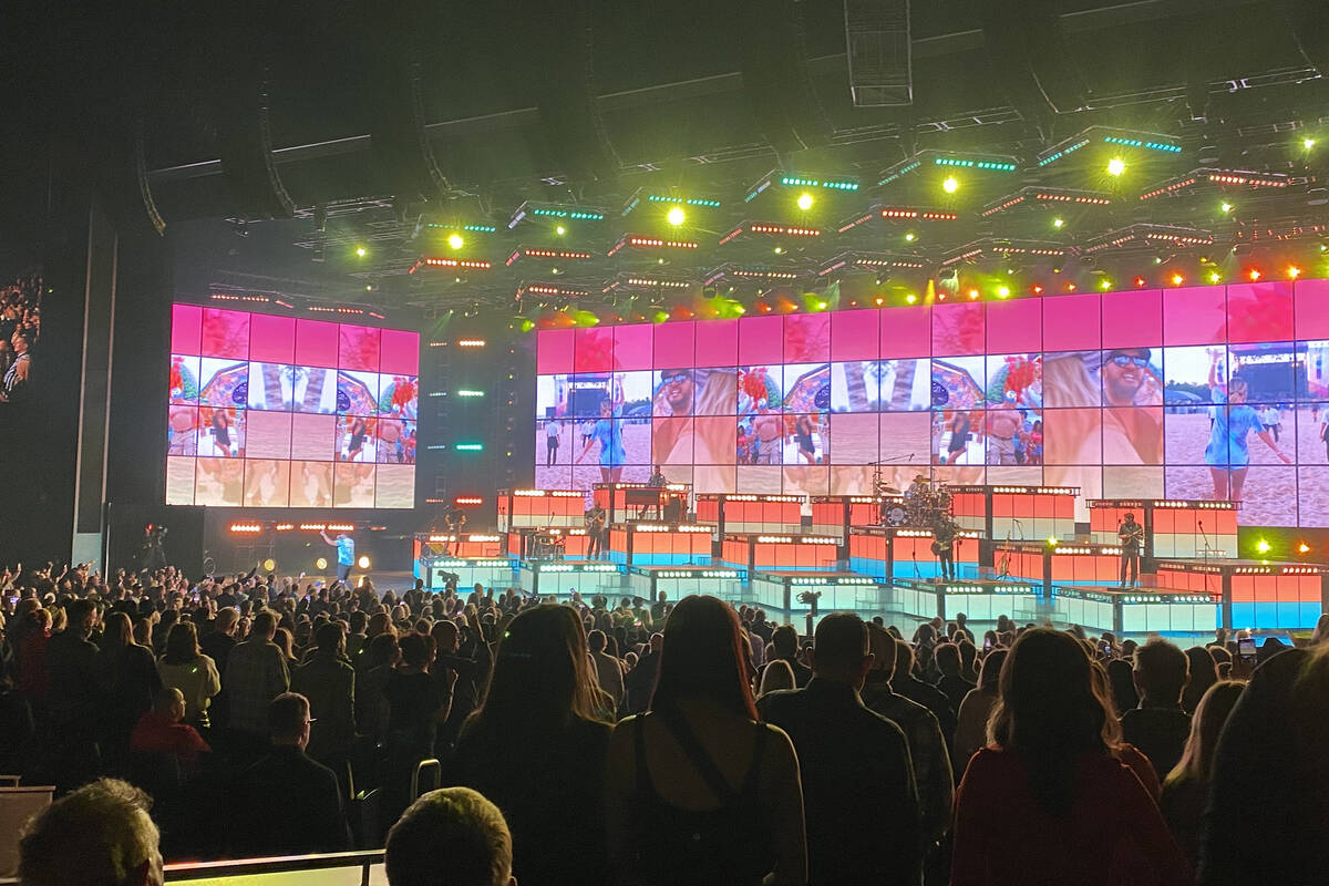 Some people are making their way to the exit at the Fremont Street Experience, but many are staying to hear the rest of Third Eye Blind’s performance that’s slated to continue until 1 a.m.