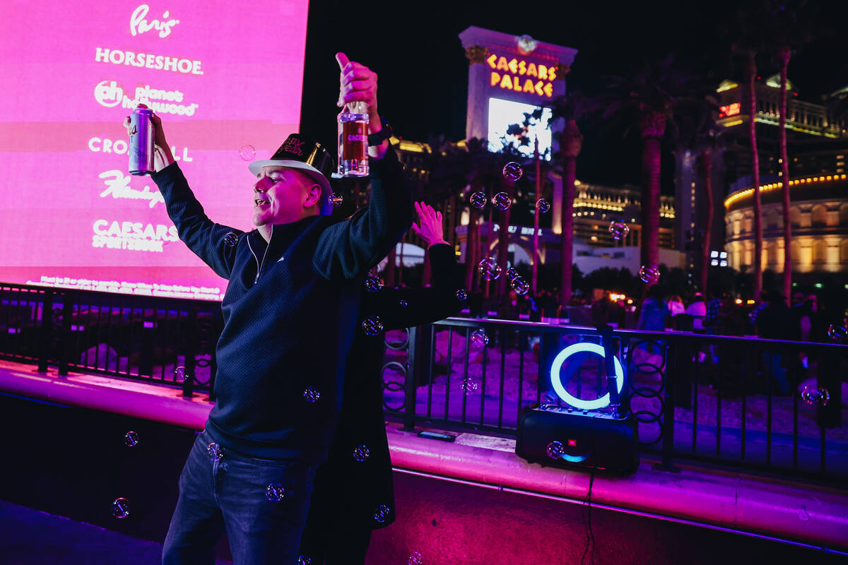 Hundreds of revelers welcomed 2024 in front of Caesars Palace.