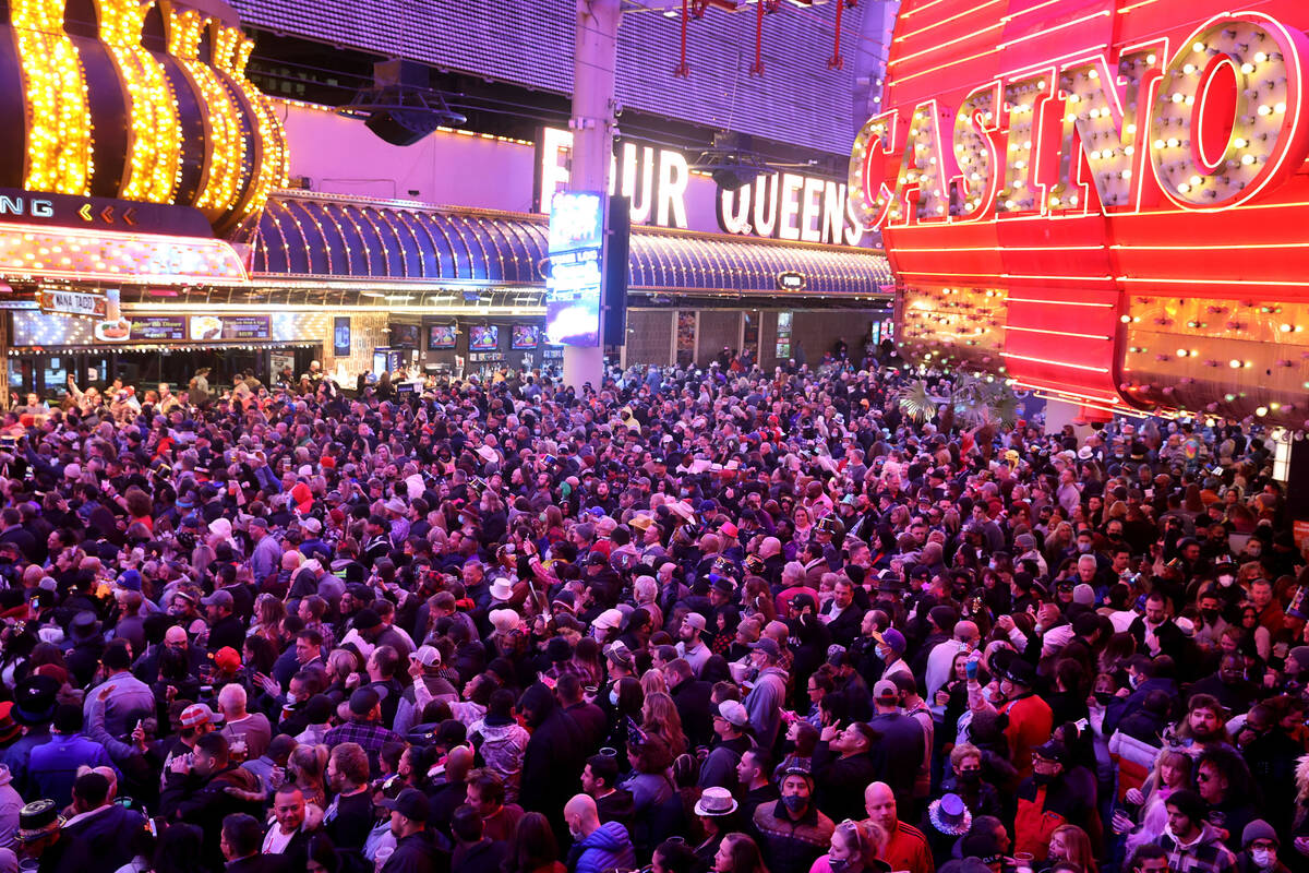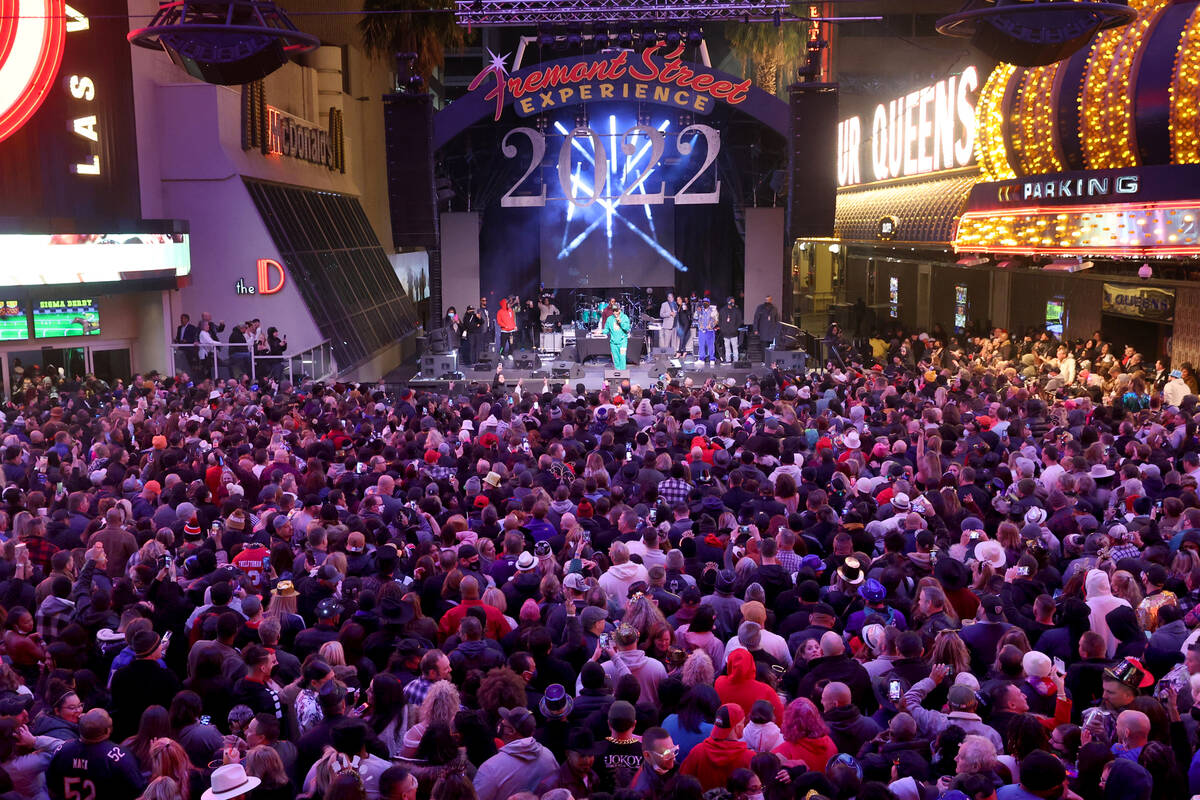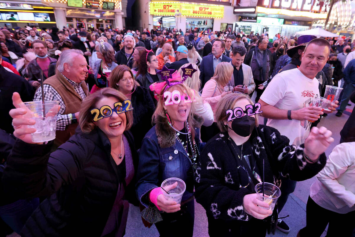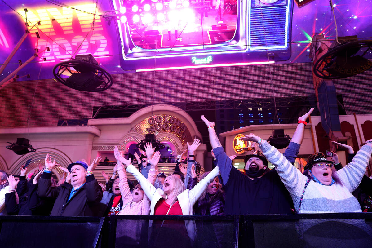 The Inspire nightclub at the corner of Las Vegas Boulevard and Fremont Street provided audible notice that 2022 had arrived, with a countdown booming from the open-air rooftop above the third floor, which then immediately resumed into a dance party.