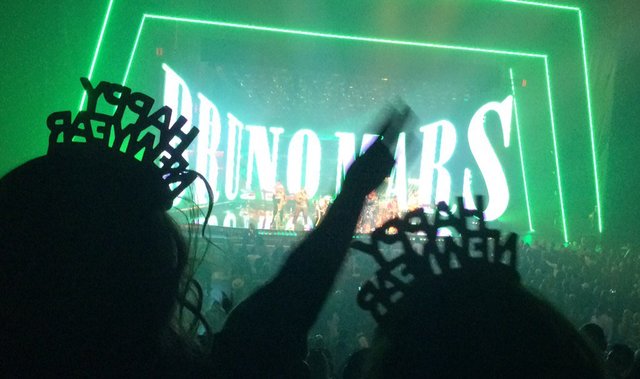 New Year’s Eve revelers gather in front of The Park during the fireworks show on the Las Vegas Strip on Saturday, Dec. 31, 2016. (Miranda Alam/Las Vegas Review-Journal) miranda.alam