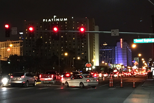 Traffic gets congested toward the Las Vegas Strip around 6:30 p.m. (Pashtana Usufzy/ Las Vegas Review-Journal)