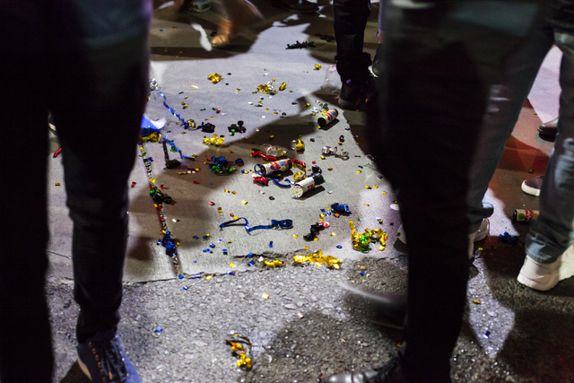 As the calendar flipped to the new year and pyrotechnics burst overhead, a good chunk of the more than 300,000 revelers tossed several tons of bottles, cups, food, paper and garbage onto the Strip.