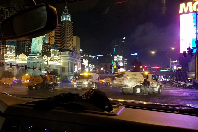 Most did, but several stood on the Strip sidewalks, pulled out their phones and snapped pictures. Others smiled and waved. A Metro officer held up her phone toward Ficklin’s truck.