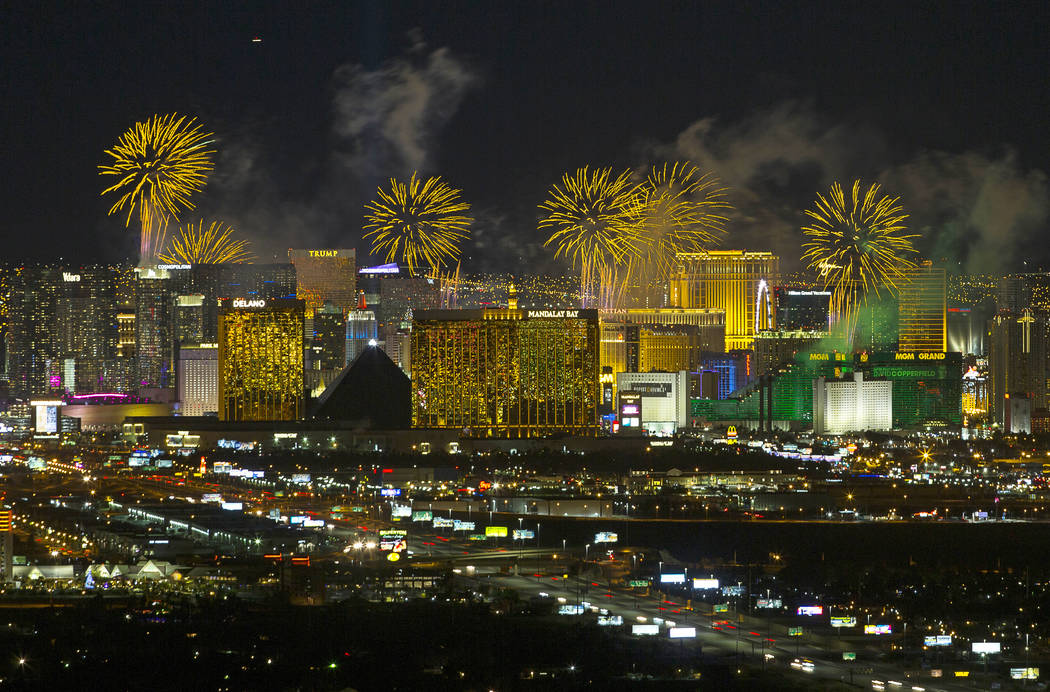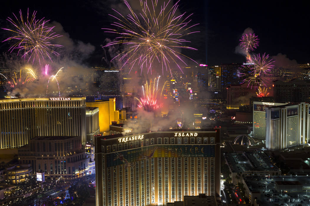 Fireworks will go off at midnight from Aria, Caesars Palace, MGM Grand, Planet Hollywood Resort, The Strat, Treasure Island and The Venetian.