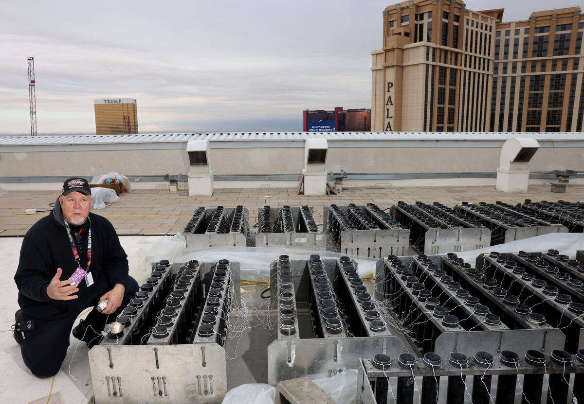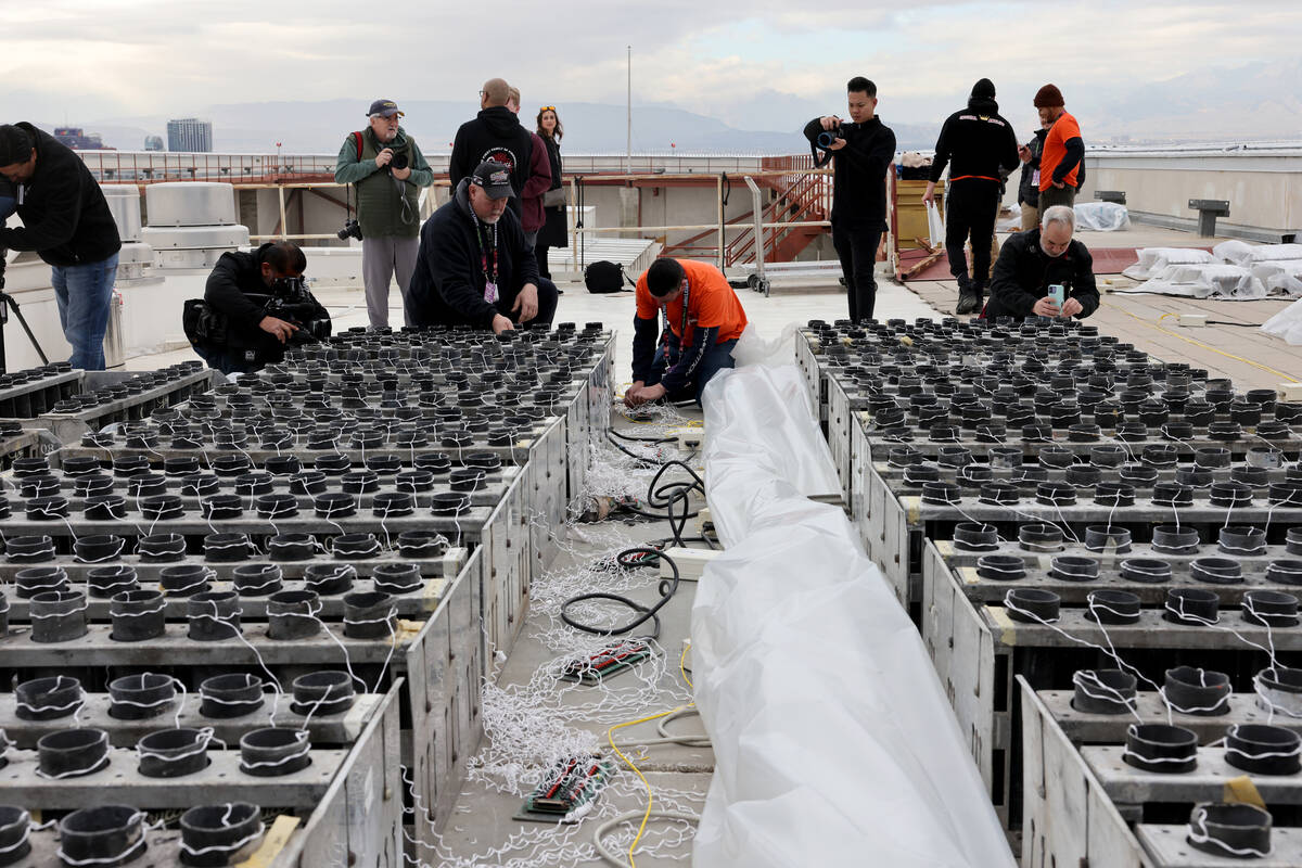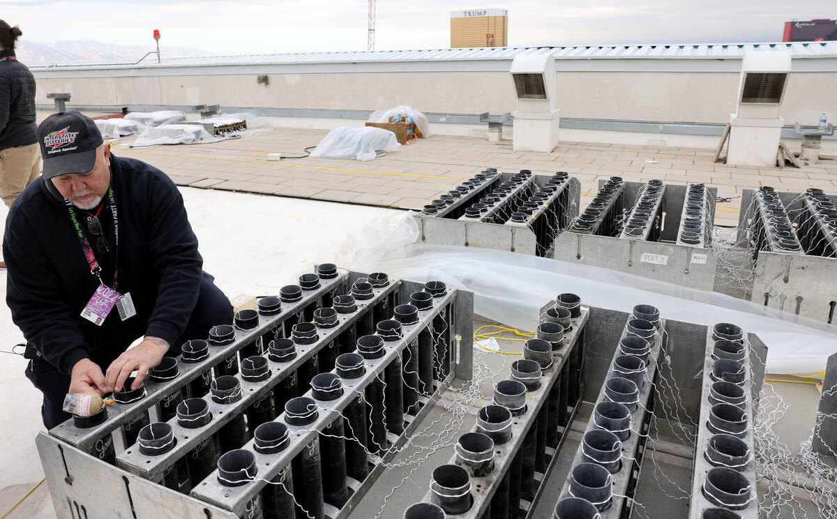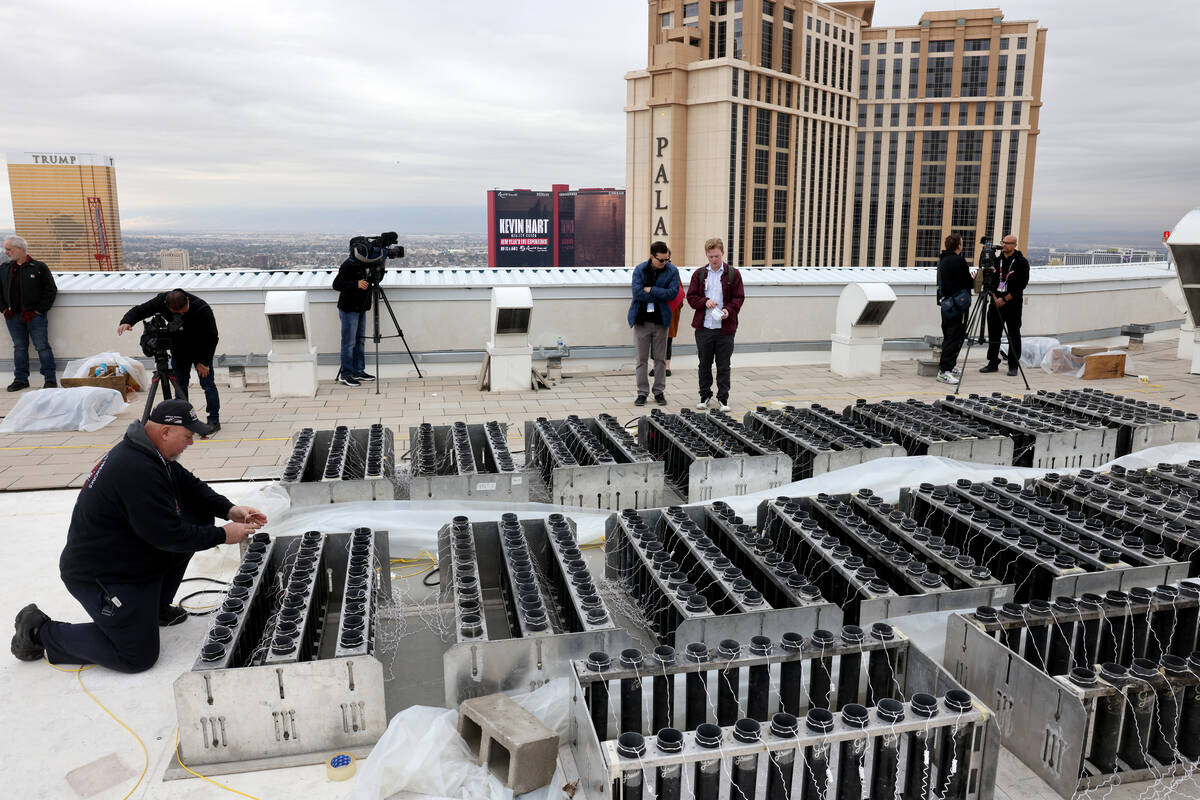 Standing outside on the roof of The Venetian, pyrotechnicians were putting the finishing touches on the fireworks display for the Strip’s eight-minute “America’s Party 2023” fireworks show for New Year’s Eve.