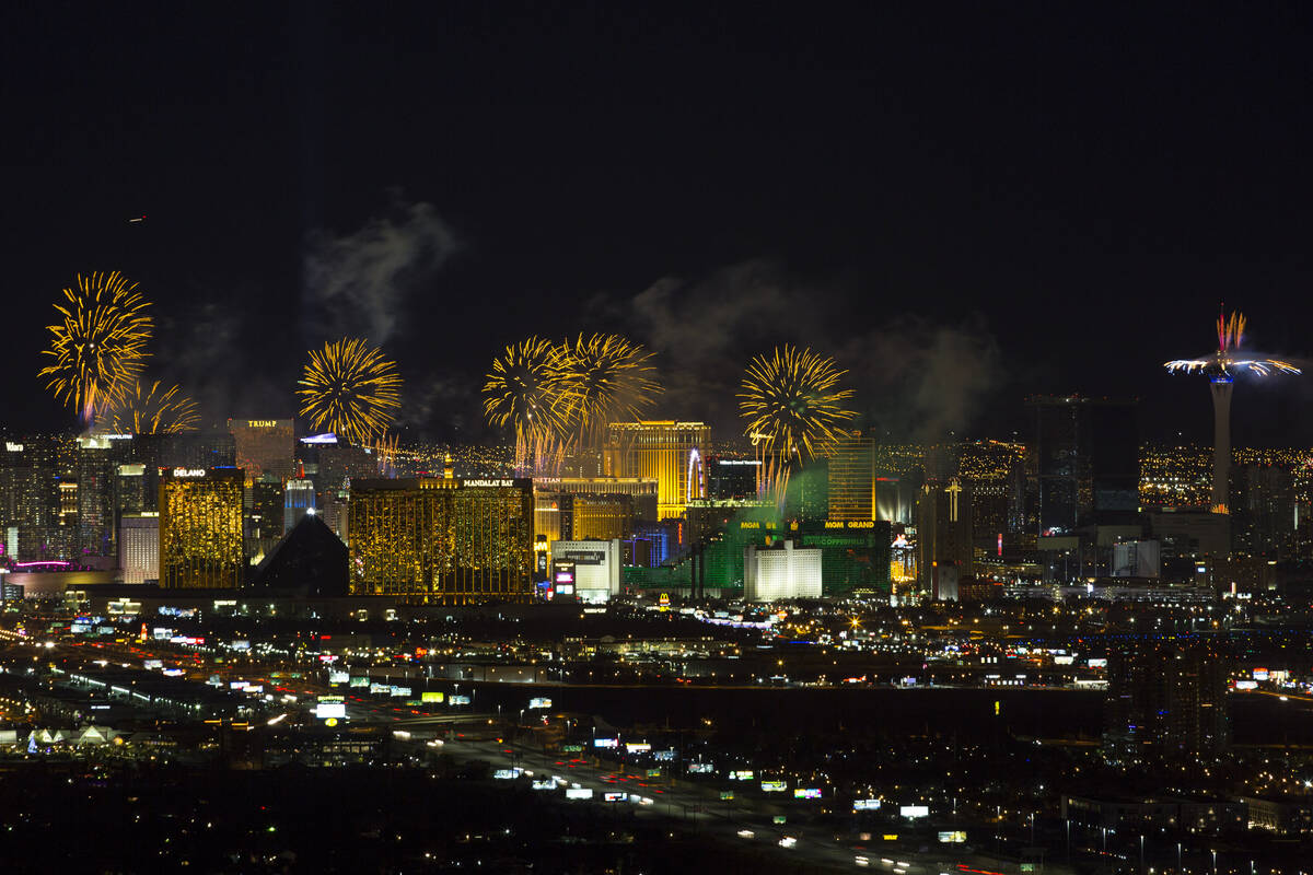 Fireworks will be launched from the MGM Grand, Aria, Planet Hollywood, Caesars Palace, Treasure Island, The Venetian, the Strat and Resorts World Las Vegas — the newest property addition following its June opening — at midnight on Jan. 1.