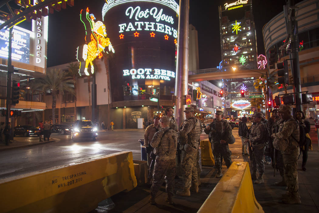 Police doubled the number of quick-response teams in the resort corridor, while the FBI deployed 100 people from outside Las Vegas for specialty positions and the Nevada National Guard sent more than more than 300 troops to the Strip, downtown and McCarran International Airport.