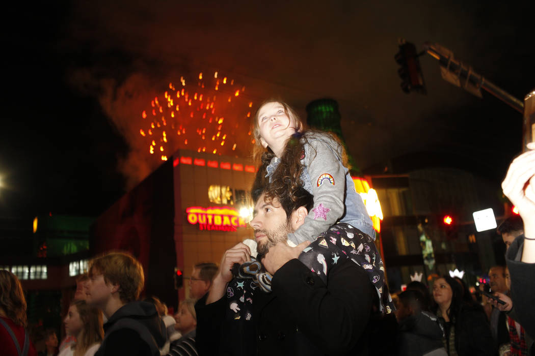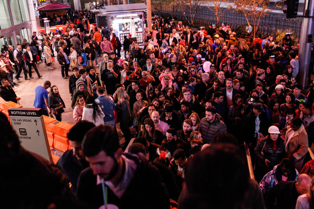 Downtown, the SlotZilla zipline was seeing a lot of action as the festivities at Fremont Street Experience got rolling at about 6:30 p.m.
