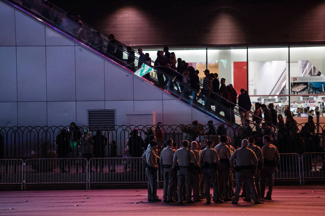 About a block south, Scott Tavis, 53, of San Francisco, admired the police presence. He said he was in Las Vegas to ring in 2018 in part because of a comped room, and the Oct. 1 shooting did not alter his plans.