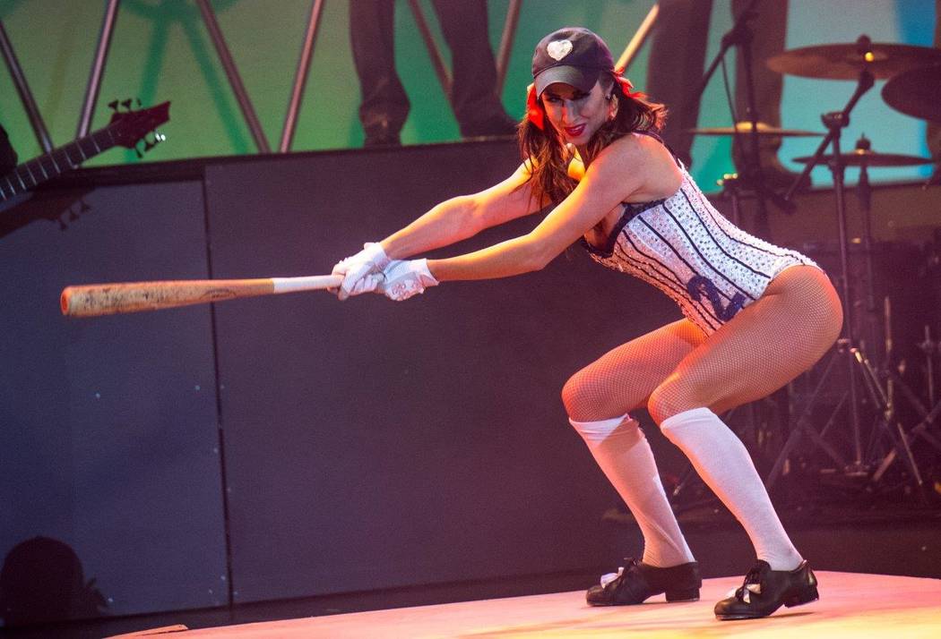 Claire, her leggy and stocking- and corseted-clad dancers and singers and the “Pin Up” players brass band, won a standing ovation as their 1,000th show ended at The Stratosphere on Saturday evening. They roared through it with a high-voltage-fueled energy as if it was the premiere all over again.