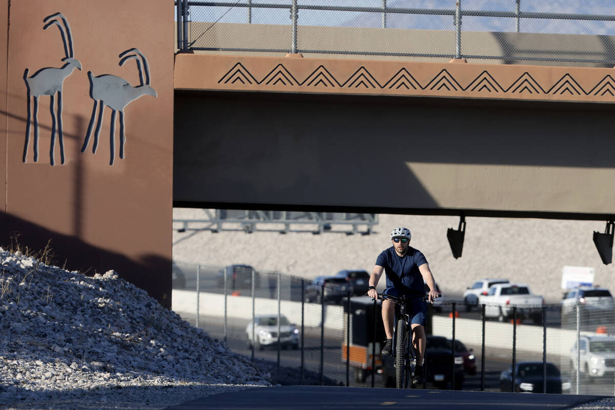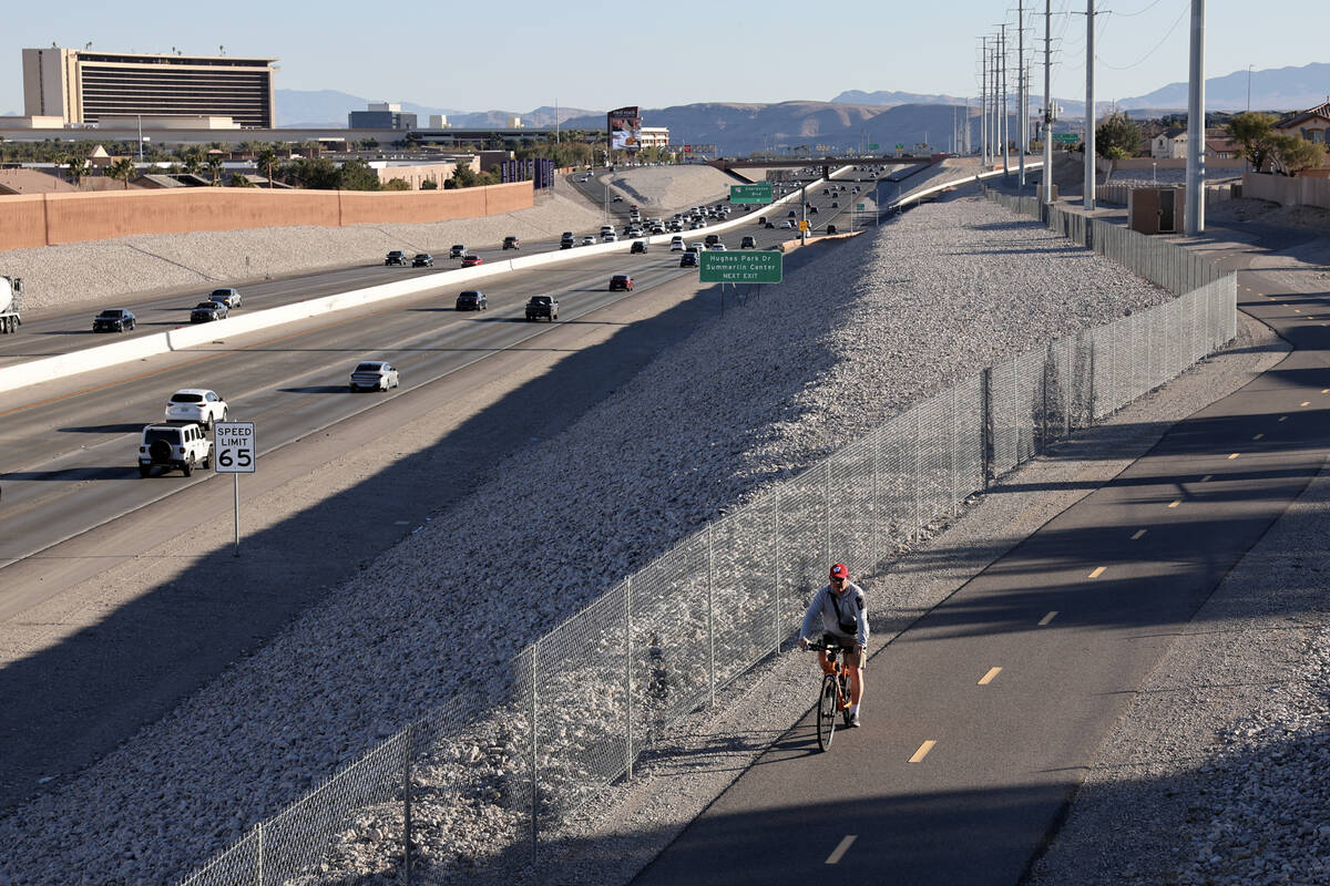 The five-mile I-215 West Beltway Trail runs along the highway between Charleston Boulevard and Tropicana Avenue, and beyond.