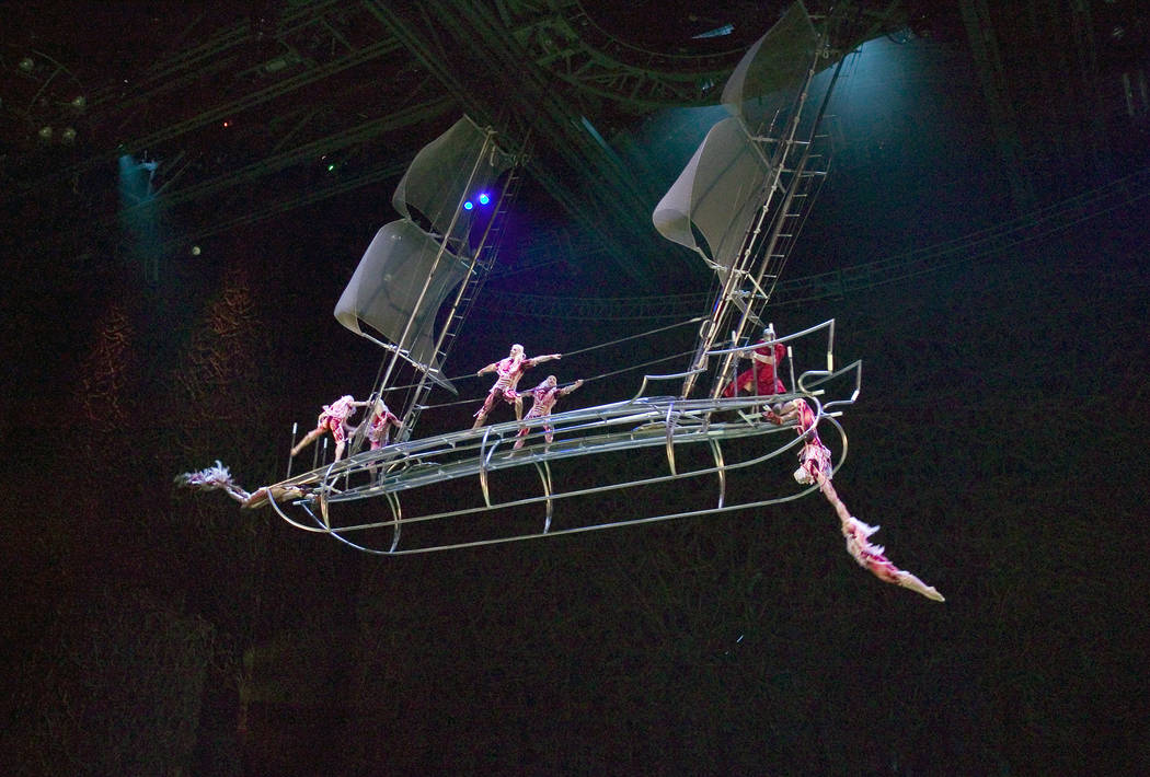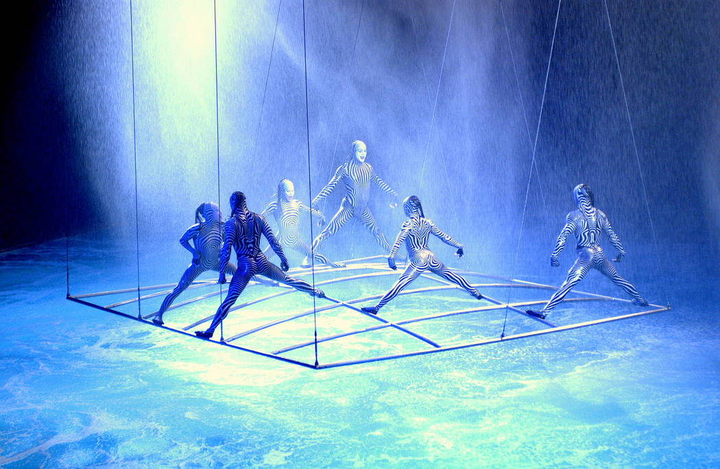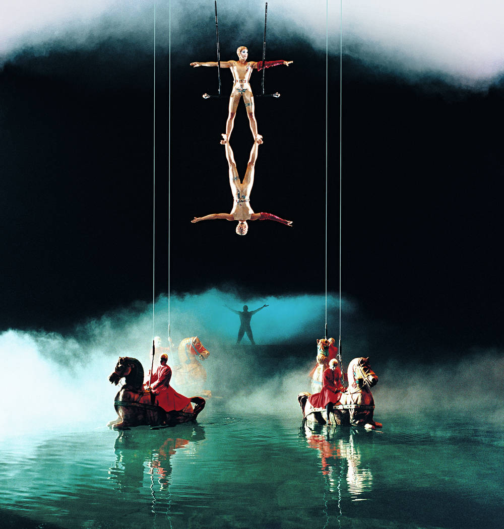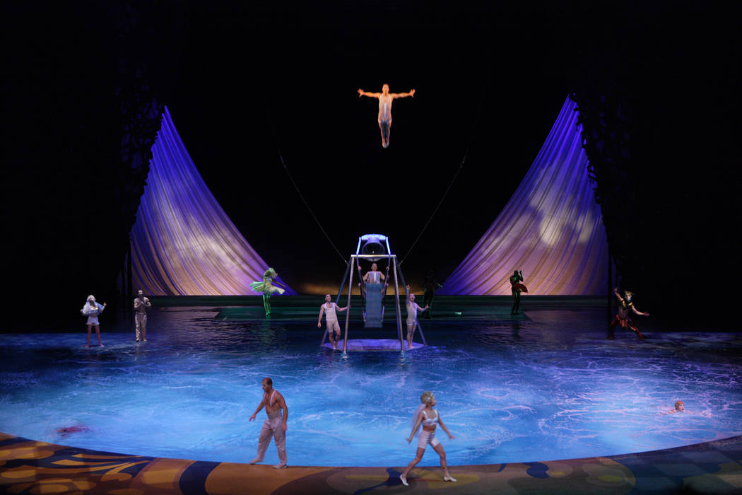 As with other Cirque shows, “O” performers are acrobats. Unlike the others, they’re also divers, swimmers, synchronized swimmers and contortionists (even fire artists — one burns in a chair for 3½ minutes), and very often the disciplines overlap. During each show, 14 technicians are underwater to assist the artists and help manipulate props.
