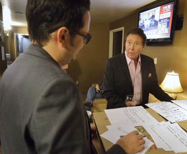 Dennis Bono stands backstage in the South Point showroom, in the wings to the right of the stage. He takes a sip from a glass of wine — nothing fancy, just a bit of white zinfandel — stretches, breathes deeply and shakes his head as if to focus.
