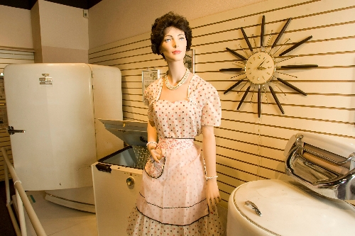 "We have one where the woman is breaking out of a cage because she’s got a frost-free refrigerator, and pixies on an iron — they must have thought women were pretty stupid," says Dawna Jolliff, Clark County Museum’s curator of exhibits, the latest being "Domestic Technology: Making Housework Easier."