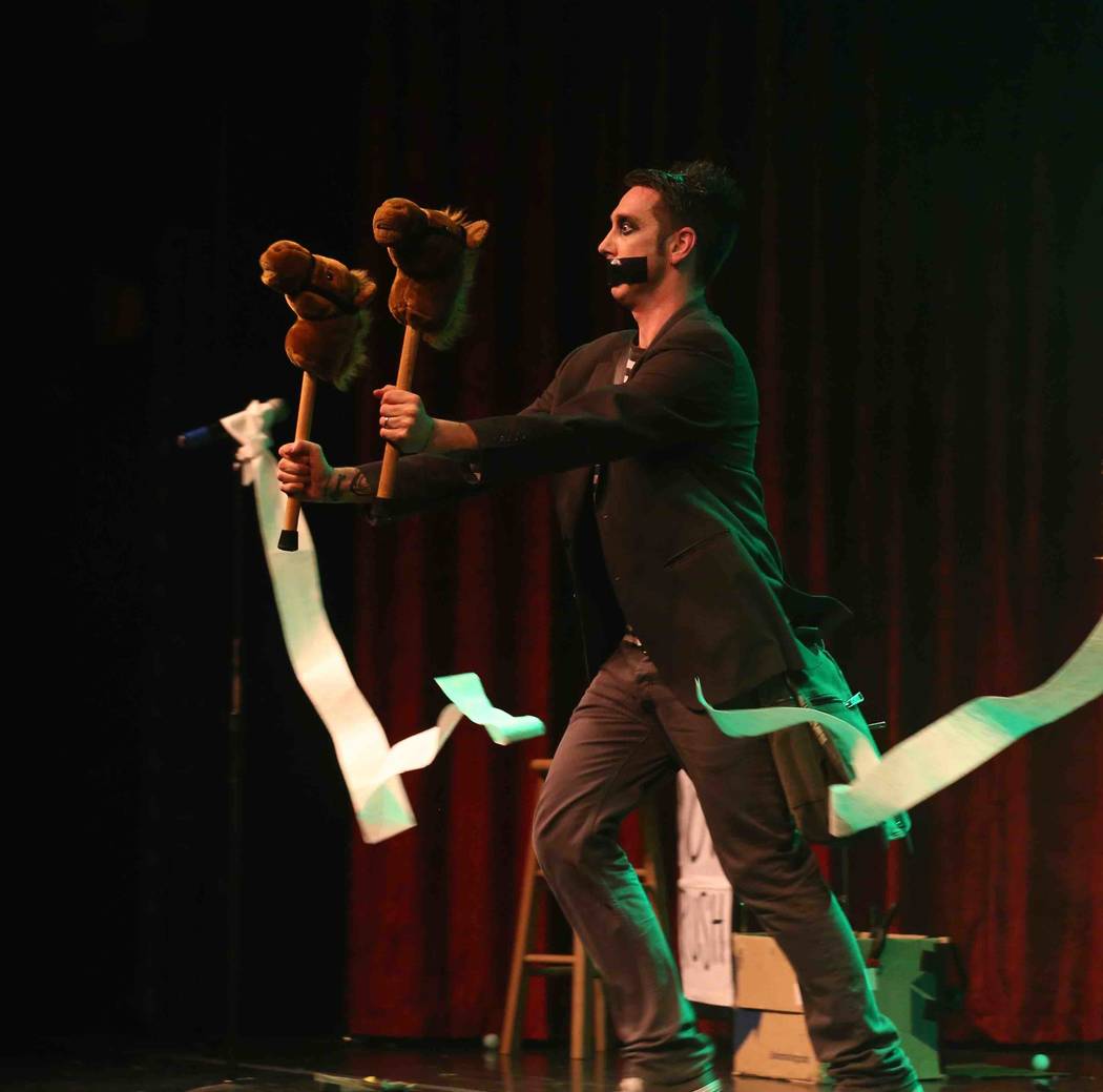 However, Tape Face, formerly The Boy Who Has Tape on His Face, has landed a Las Vegas residency, which he dreamed of as a kid — as a juggler, not a mime. In a sense, he’s a silent Carrot Top using the craziest set of props ever hauled out of a crass off-Strip souvenir shop. His humor is deviously simple but really clever and appealing to kids, parents and grandparents.