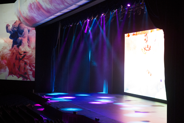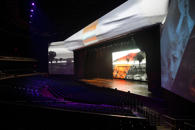 The Monte Carlo’s new venue comes with 11 high-definition projectors, which can project a continuous image from the 135-by-40-foot wall/screen on the left side of the stage, keep it going across the stage proscenium and connect it over to an equal-sized wall on the right side of the stage.
