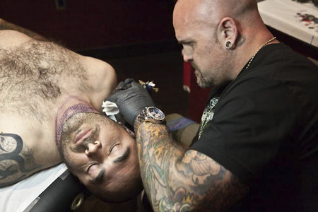 Last year, Staind frontman Aaron Lewis got the most radical tattoo I’ve ever heard anyone getting in Las Vegas. On Oct. 1, the singer of “It’s Been A While” went to the Hard Rock Hotel’s Hart & Huntington and got “DON’T TREAD ON ME” inked across his neck.