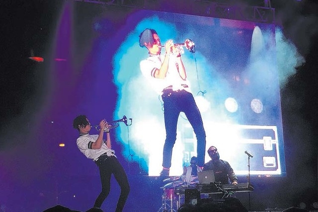 One stage, two bands, a 40-year-old man getting caked in the face and a night of rain became the Downtown Las Vegas Events Center’s grand concert opening Saturday night.