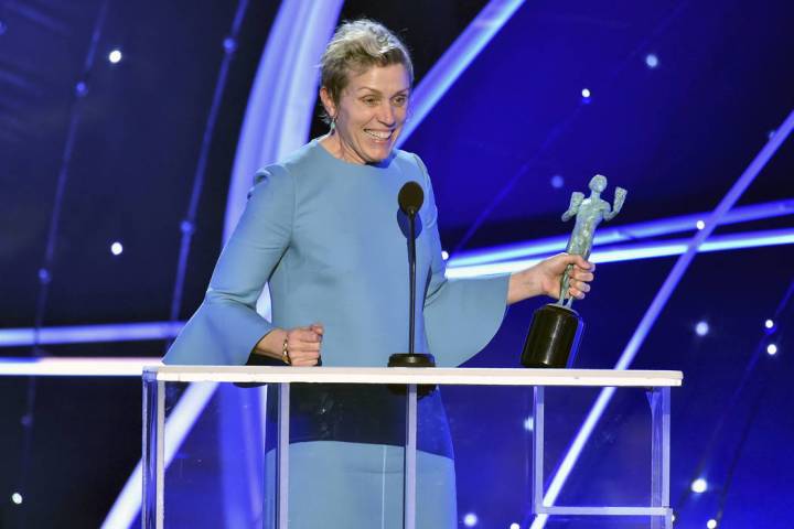 The Western-inspired revenge tale “Three Billboards Outside Ebbing, Missouri” swept the female-focused and led Screen Actors Guild Awards Sunday with wins for best ensemble, best actress for Frances McDormand and best supporting actor for Sam Rockwell.