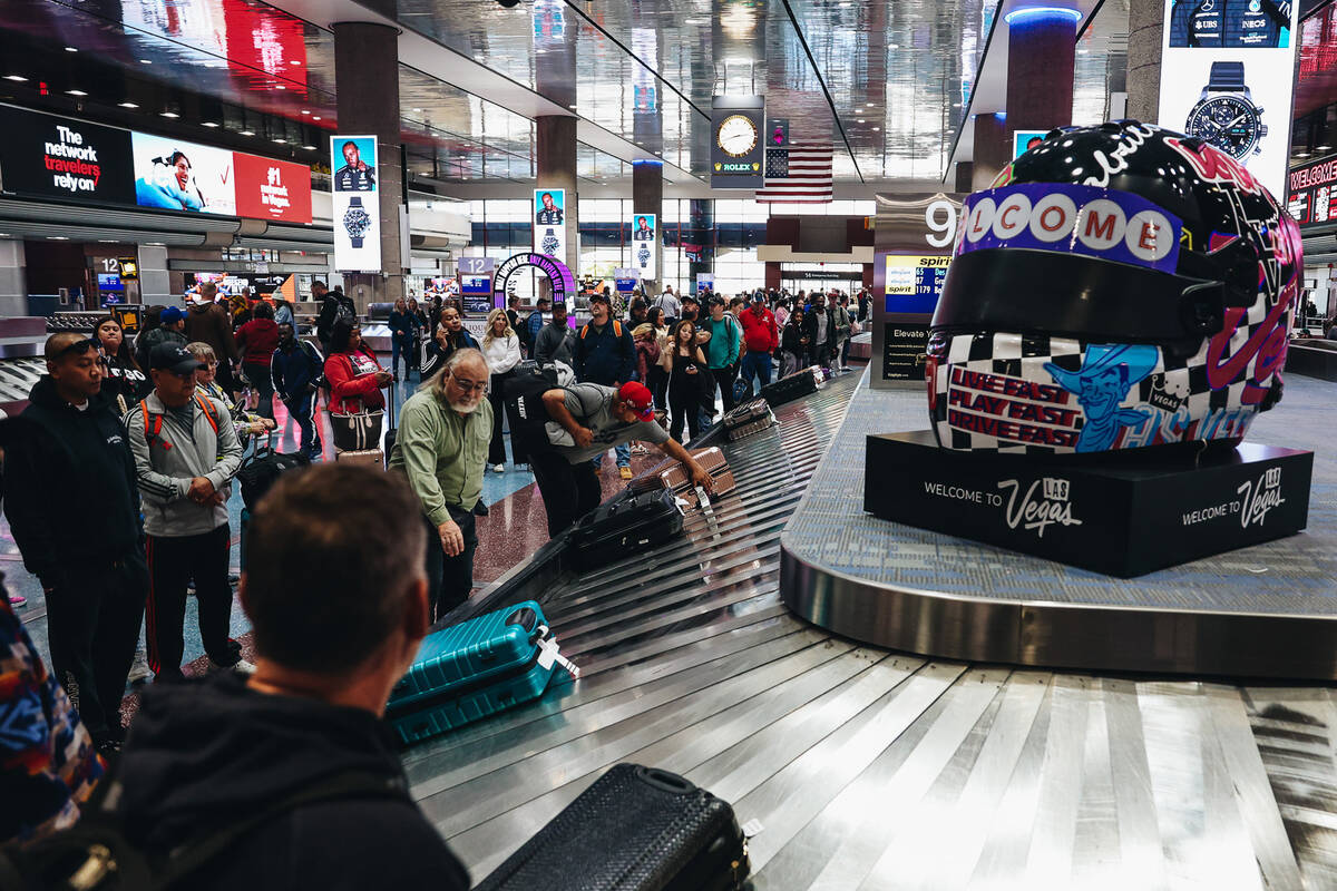 Clark County Department of Aviation officials on Wednesday said a steady flow of passengers — many of them wearing Formula One race gear — were arriving at the main commercial airport serving Las Vegas.