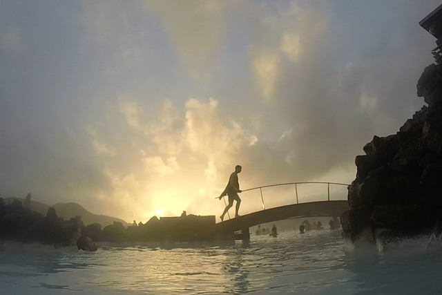 The water hovers around 110 degrees through the hot spring and feels restorative against the damp, nearly freezing air.The ever-present drizzle paused just in time for the setting sun to pierce through the thick fog, illuminating the water and baking the algae mud mask spread across my face.