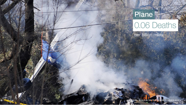 CNNMoney calculated how many people are killed for every one billion passenger miles traveled to compare the safety of different modes of transportation. So a 500-mile trip on a plane carrying 100 people would be equivalent in passenger miles to someone driving a 500 mile car trip alone 100 times.