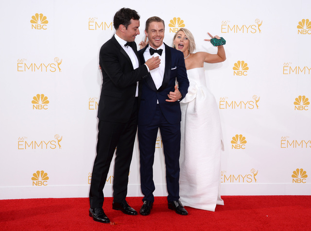 Julia Louis-Dreyfus, who received her third consecutive best comedy actress Emmy for the political comedy “Veep,” drew big laughs as she stopped to exchange faux heated kisses with Cranston, who earlier was her co-presenter and who appeared with her on “Seinfeld.”