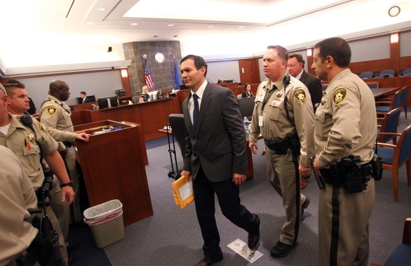 Former Las Vegas firefighter George Tiaffay walks out of the courtroom before being found guilty of paying a homeless man to kill his wife during his trial at the Regional Justice Center Thursday, Sept. 3, 2015. Chase Stevens/Las Vegas Review-Journal Follow @CSStevensPhoto