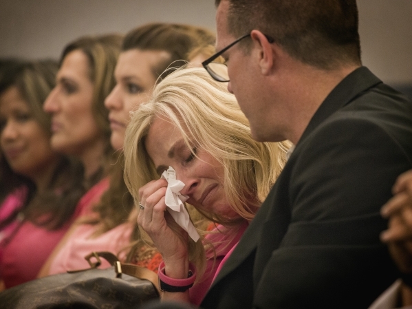 Paula Stoke Richards, sister of murder victim Shauna Tiaffay, wipes a tear during sentencing of onvicted murder George Tiaffay, after sentencing at Regional Justice Court, 200 Lewis Avenue, on Friday, Sept. 4, 2015. The former firefighter received life sentence without parole in the first degree murder of his wife. JEFF SCHEID/LAS VEGAS REVIEW-JOURNAL Follow him @jlscheid