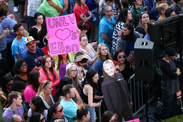 Hundreds of people stood in front of the Las Vegas Boulevard entrance of Caesars Palace Tuesday afternoon, eager to catch a glimpse of Ellen DeGeneres.