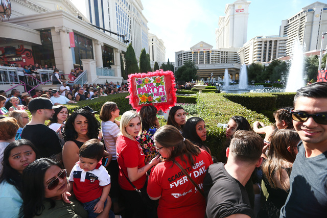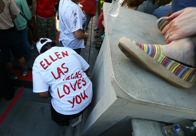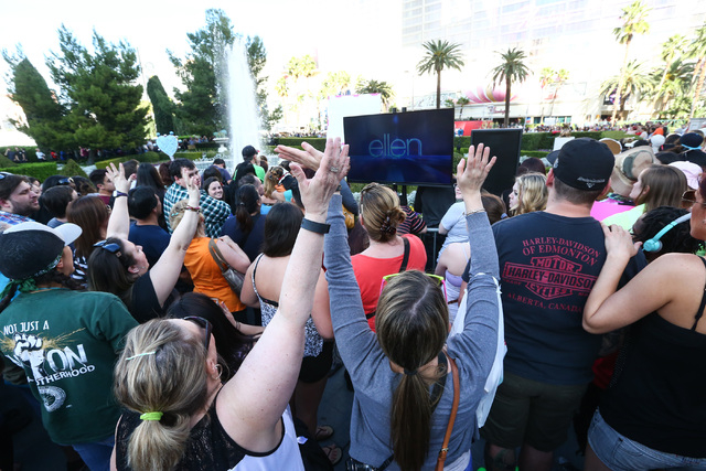 Hundreds of people stood in front of the Las Vegas Boulevard entrance of Caesars Palace Tuesday afternoon, eager to catch a glimpse of Ellen DeGeneres.