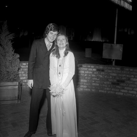 Actress Patty Duke, right, and Michael Tell pose at their wedding at the Little Church of the West in Las Vegas on June 24, 1970. The marriage lasted only 13 days, ending in annulment. Patty Duke died Tuesday, March 29, 2016 at age 69. (Tony King/Las Vegas News Bureau)